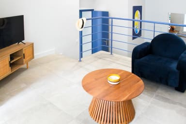 Coté Salon séparé : 1 canapé, TV écran plat, Wifi.